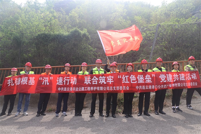 為充分發(fā)揮黨員的先鋒模范作用和黨組織的戰(zhàn)斗堡壘作用,全面提升道路養(yǎng)護(hù)水平,深入開展好“黨建融合養(yǎng)護(hù)”示范引領(lǐng)行動(dòng),4月18日上午,豐達(dá)公司聯(lián)合港口公管公司開展“扎穩(wěn)根基‘汛’速行動(dòng),聯(lián)合筑牢‘紅色堡壘’黨建共建”專項(xiàng)行動(dòng)。豐達(dá)公司黨總支書記、董事長王梁洲、工會(huì)主席孫婷,港口公管公司總經(jīng)理馮日利、黨支部書記侯敏出席活動(dòng),高速養(yǎng)護(hù)分公司東疏港項(xiàng)目部相關(guān)人員參加活動(dòng),活動(dòng)由港口公管公司工程管理中心經(jīng)理蔡宇娟主持。