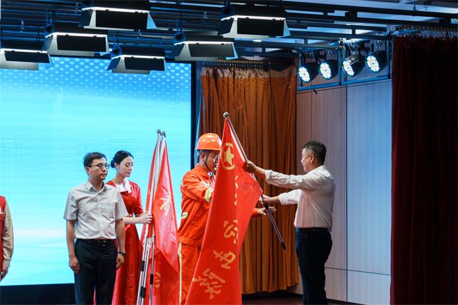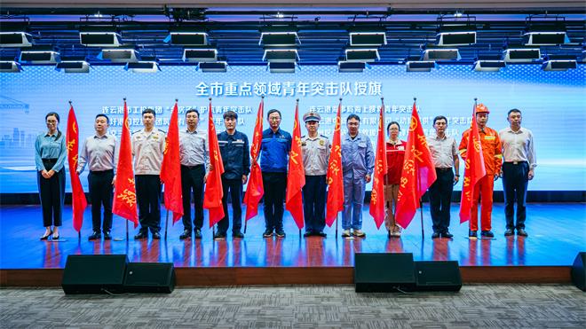 5月23日,團(tuán)市委聯(lián)合市委市級(jí)機(jī)關(guān)工委、市發(fā)改委、市民政局、市應(yīng)急管理局、市消防支隊(duì)在全市深入開展“2025年連云港市服務(wù)重點(diǎn)企業(yè)、重大項(xiàng)目青年發(fā)展項(xiàng)目”啟動(dòng)儀式。豐達(dá)公司作為重點(diǎn)領(lǐng)域青年突擊隊(duì)代表上臺(tái)接受授旗,以一抹亮眼橙色閃耀全場,接過了象征使命與擔(dān)當(dāng)?shù)那啻簯?zhàn)旗。
