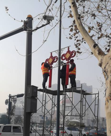 ? ? ? ?為營造新春佳節(jié)喜慶祥和、文明健康的節(jié)日氛圍,在新春佳節(jié)來臨之際,豐達(dá)公司在人民路、海寧大道、BRT始發(fā)站、市區(qū)建設(shè)路等處燈桿安裝了1622串燈籠串和164個(gè)中國結(jié)。