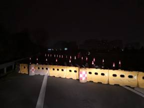 28日零點(diǎn)根據(jù)業(yè)主緊急通知,對宋跳及灌云西收費(fèi)站進(jìn)行封閉作業(yè)。公司緊急調(diào)配攔路水馬26個(gè),錐桶80個(gè),太陽能閃光箭頭指示燈3臺。出動(dòng)工具車3臺,人工7人。分成2個(gè)施工班組,及時(shí)封閉宋跳及灌云西收費(fèi)站3條出口匝道。