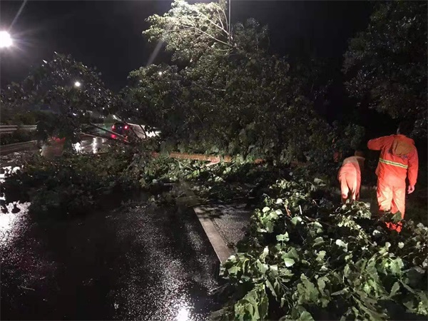 豐達公司市區(qū)養(yǎng)護分公司主要負責(zé)我市G310、G204、G311、G228、S242約200公里的國省干道管養(yǎng)工作。目前我市已進入汛期,7月14日下午4時,一場狂風(fēng)暴雨突襲港城,公司“12345”應(yīng)急搶險人員立即開展巡查排險工作,311、204國道連續(xù)有樹木被大風(fēng)刮到在路邊,影響車輛、行人通行,搶險人員頂著狂風(fēng)暴雨,立即進行排險工作,通過近7個小時的連續(xù)奮戰(zhàn),對20多棵倒伏樹木進行清理,將斷樹斷枝運離現(xiàn)場,將倒伏的樹木扶正,在最短時間恢復(fù)道路暢通,實實在在為群眾的安全出行辦實事。