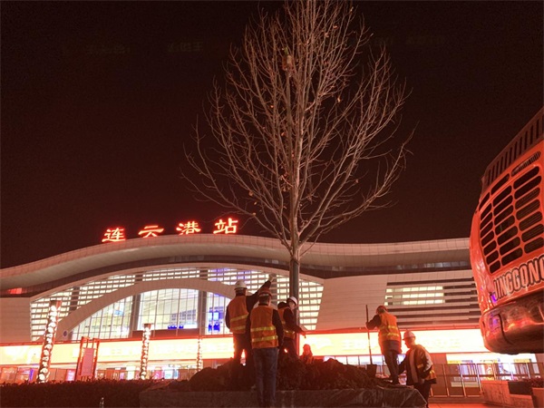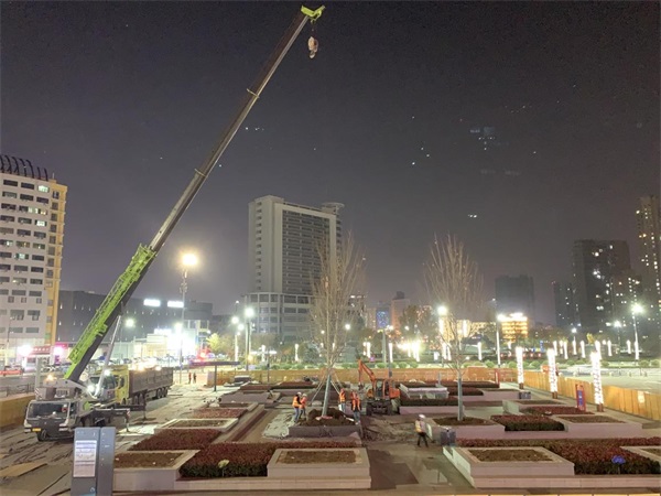 ? ? ? ? ?根據(jù)交通集團(tuán)綜合客運樞紐周邊綠化提升工程施工方案和創(chuàng)文創(chuàng)衛(wèi)相關(guān)要求,綜合客運樞紐屬于交通要道,客流量較大,工程施工要************不影響旅客通行,保證施工現(xiàn)場安全、整潔。豐達(dá)公司積極采取措施,對整個施工現(xiàn)場進(jìn)行封閉圍擋,禁止非施工人員進(jìn)入,確保工程施工安全,并及時清理現(xiàn)場垃圾,達(dá)到文明施工要求。同時合理安排施工計劃,采取錯峰作業(yè)、夜間施工的方式,白天做好已植苗木修剪斷干、支架固定、保水養(yǎng)護(hù)等工作,利用夜間客流量較少的情況,組織大型機(jī)械和人員作業(yè),全力推進(jìn)施工進(jìn)度,確保工程按時保質(zhì)完工。