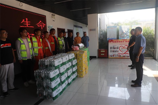 7月18日下午,豐達(dá)公司在家領(lǐng)導(dǎo)班子成員到權(quán)屬五家單位開展了夏季安康“三送”活動。總經(jīng)理王梁洲代表公司領(lǐng)導(dǎo)班子看望慰問了在一線戰(zhàn)高溫、保暢通的廣大職工,為他們送上綠豆、涼茶等防暑降溫物品。每到一處,總經(jīng)理王梁洲與大家親切交談,感謝他們?yōu)楣景l(fā)展所付出的心血和汗水,并叮囑他們注意防暑降溫和安全生產(chǎn),實(shí)施高溫錯(cuò)時(shí)作業(yè),切實(shí)做好勞動保護(hù)工作。同時(shí)要求各單位把防暑降溫工作落實(shí)到每個(gè)工地、班組和職工個(gè)人,把維護(hù)廣大職工安全和健康權(quán)益落到實(shí)處,盡力為職工營造良好的工作環(huán)境。