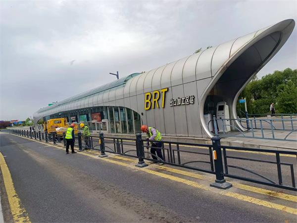 近期,出口加工區(qū)BRT車道交通護(hù)欄遭到損壞,存在較大安全隱患。市國資交通控股集團(tuán)權(quán)屬豐達(dá)公司“橙色突擊隊(duì)?wèi)?yīng)急班組”接到“12345”熱線任務(wù),立刻前往現(xiàn)場(chǎng)查看,根據(jù)實(shí)際情況及時(shí)制定修復(fù)方案,確保過往行人和車輛出行安全。